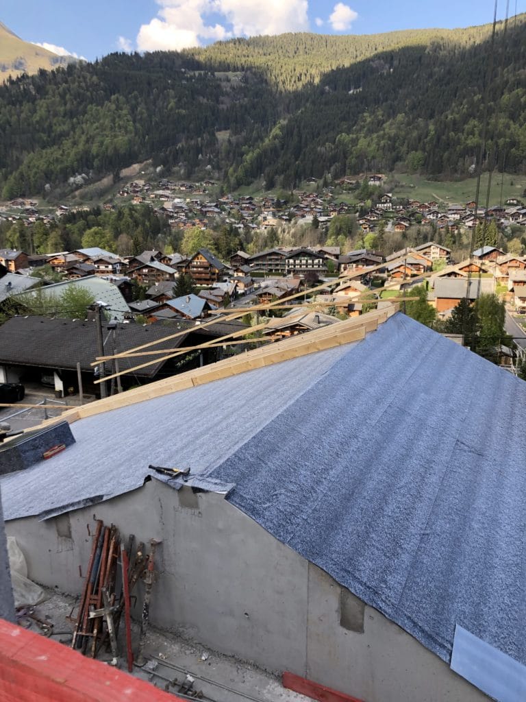 La charpente du 1er toit, les balcons des 1 er et 2 ème étages sont terminés et l’installation des premières peaux des cloisons de ces 2 étages ont été débutées en début de semaine.
