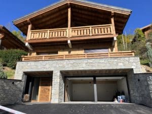 Chalet Haut de gamme de 258m2, construit sur une parcelle d’environ 450m2. Vue dégagée sur le village de Morzine. Charpente en mélèze éclaté brossé, bardage en mélèze éclaté brossé, soubassement en pierres avec encadrements métalliques des portes de garage, un vrai mélange de traditionnel et de modernité.